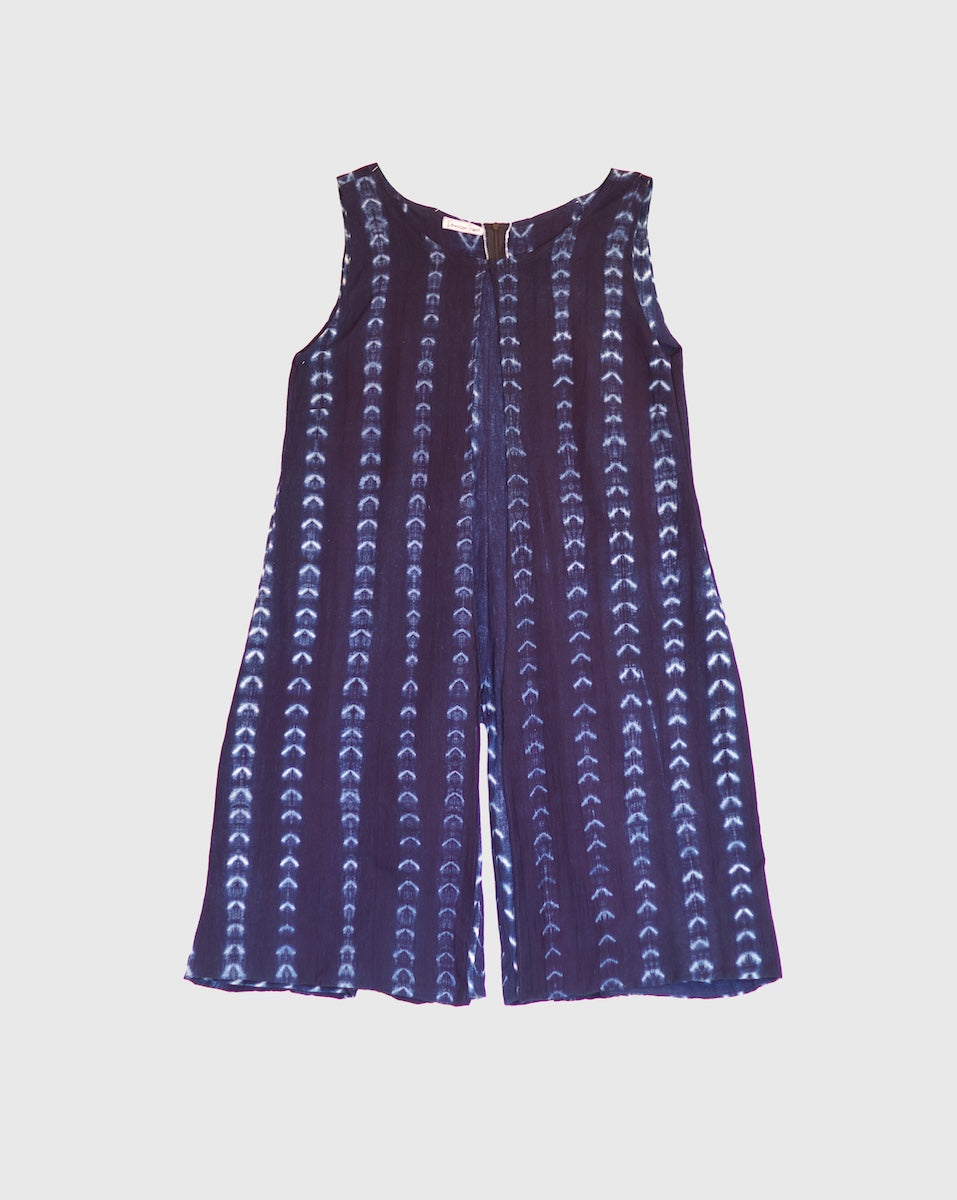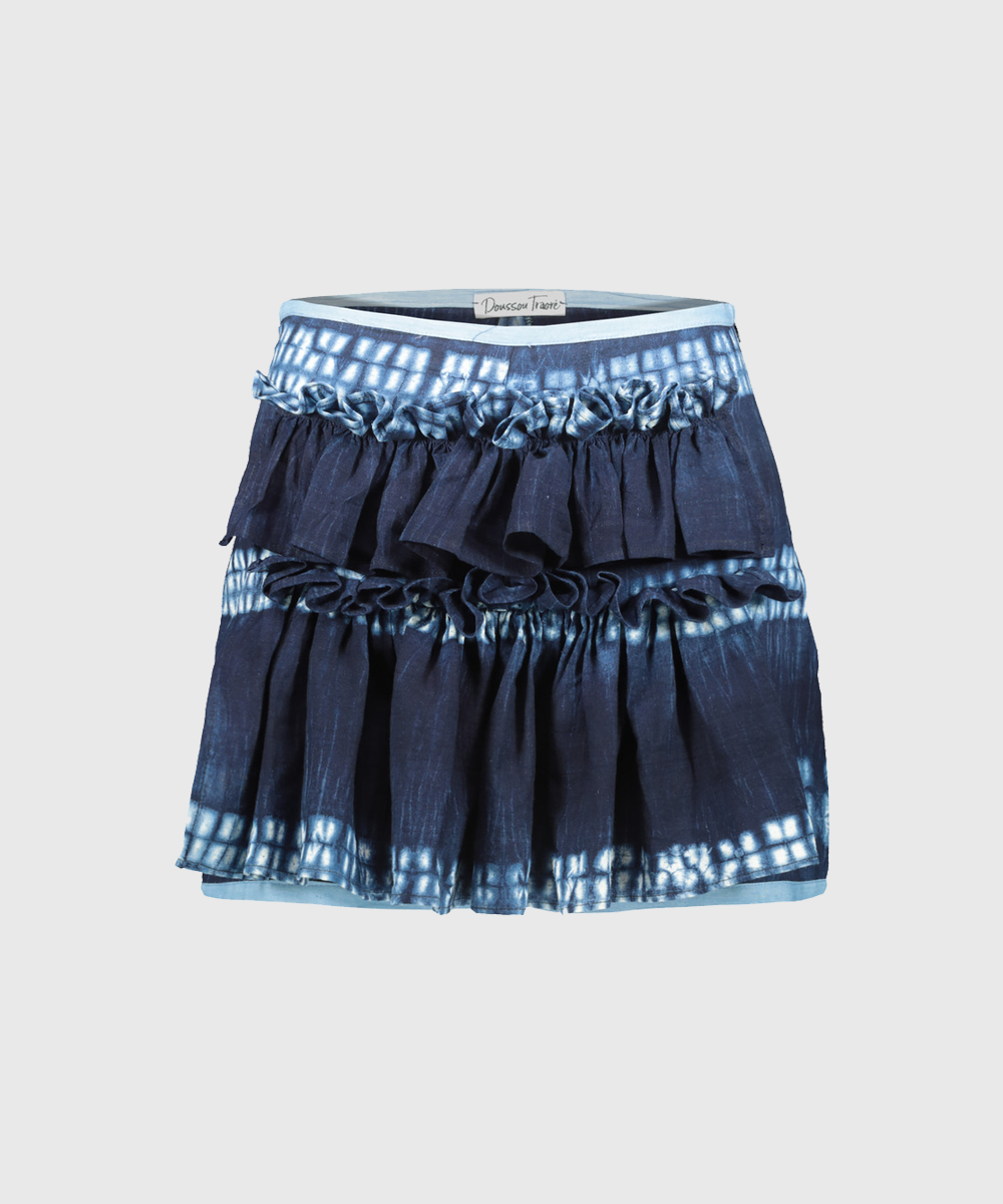 Vibrant high-waisted shorts with the perfect length at mid-thigh in a bright indigo tie-and-dye ruffle in the front. For a casual yet original look for day or night; simply change up your shoes and you're ready for any occasion...