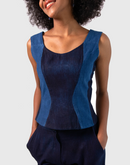Beautifully designed top with an elegant V back. With its blue tones duo and geometric construction, you are sure to have an impressive look!