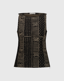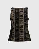 Sleeveless top in classic artisanal Bogolan (mudcloth) print cotton