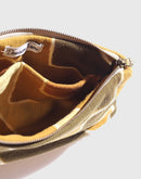 - Care: Gently wipe with lightly damped cloth to clean raffia. Always store the pochette in the pouch provided.