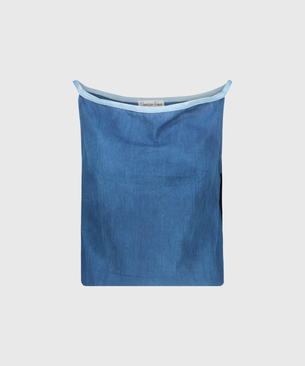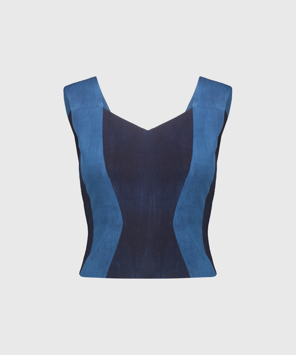 A classic sleeveless tie-and-dye indigo cropped top