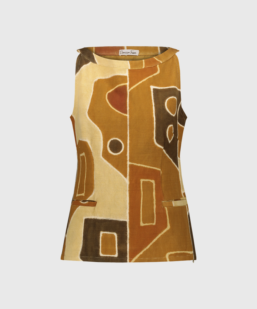 Sleeveless top in classic artisanal Bogolan (mudcloth) print cotton